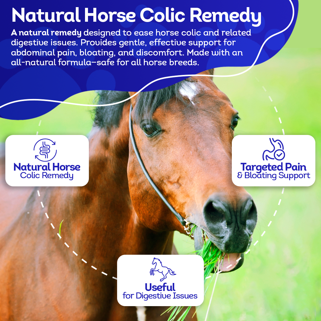 WHY CHOOSE OUR HORSE COLIC SUPPORT REMEDY? Easy to give to your horse and highly palatable, this powerful supplement is perfect for horses of all ages and activity levels. If you're looking for a natural, safe, and effective remedy for colic in your horse, look no further than our Colic Support Remedy.