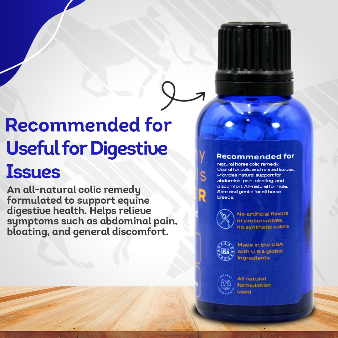 HORSE COLIC SUPPORT is a natural homeopathic supplement specially designed for colic in horses. This potent supplement may help with colic, abdominal pain, discomfort, bloating, and gas. With regular use, Colic Horse Remedy can support digestive health.
